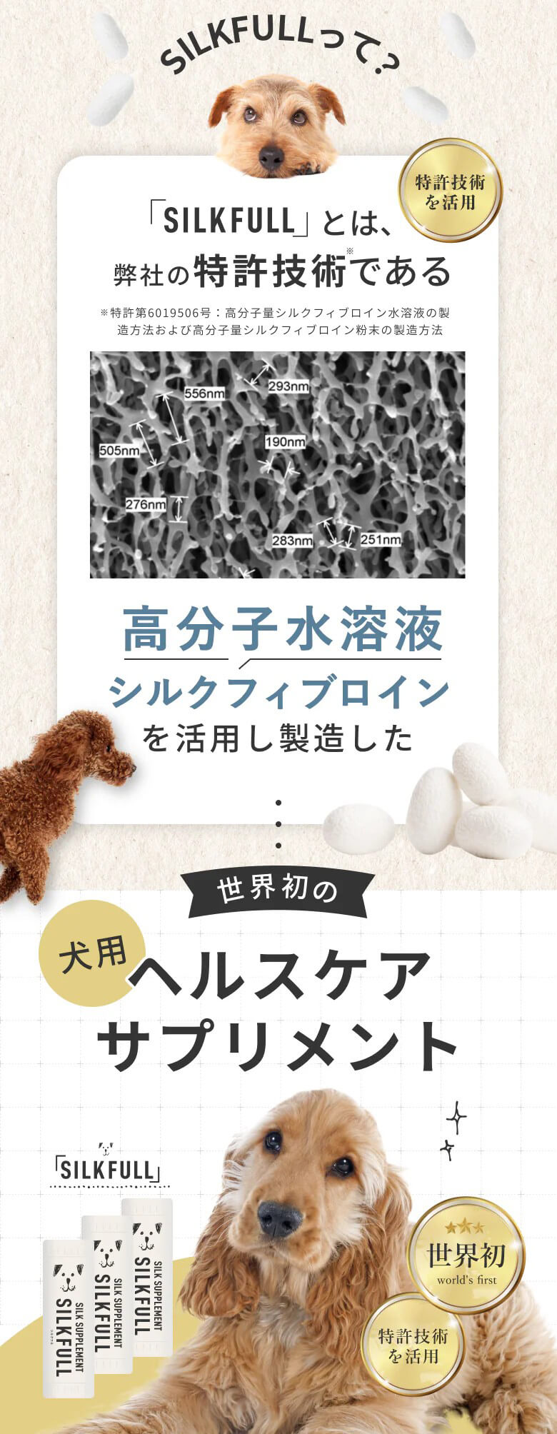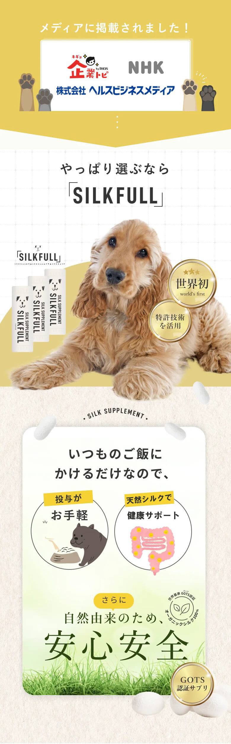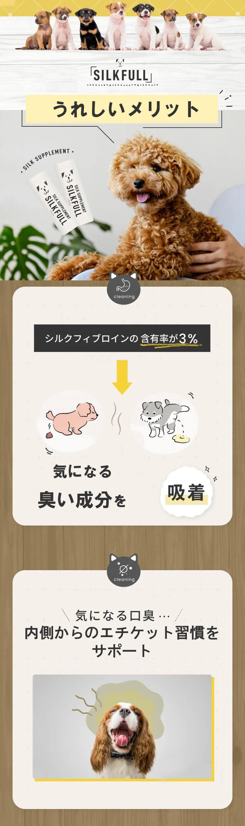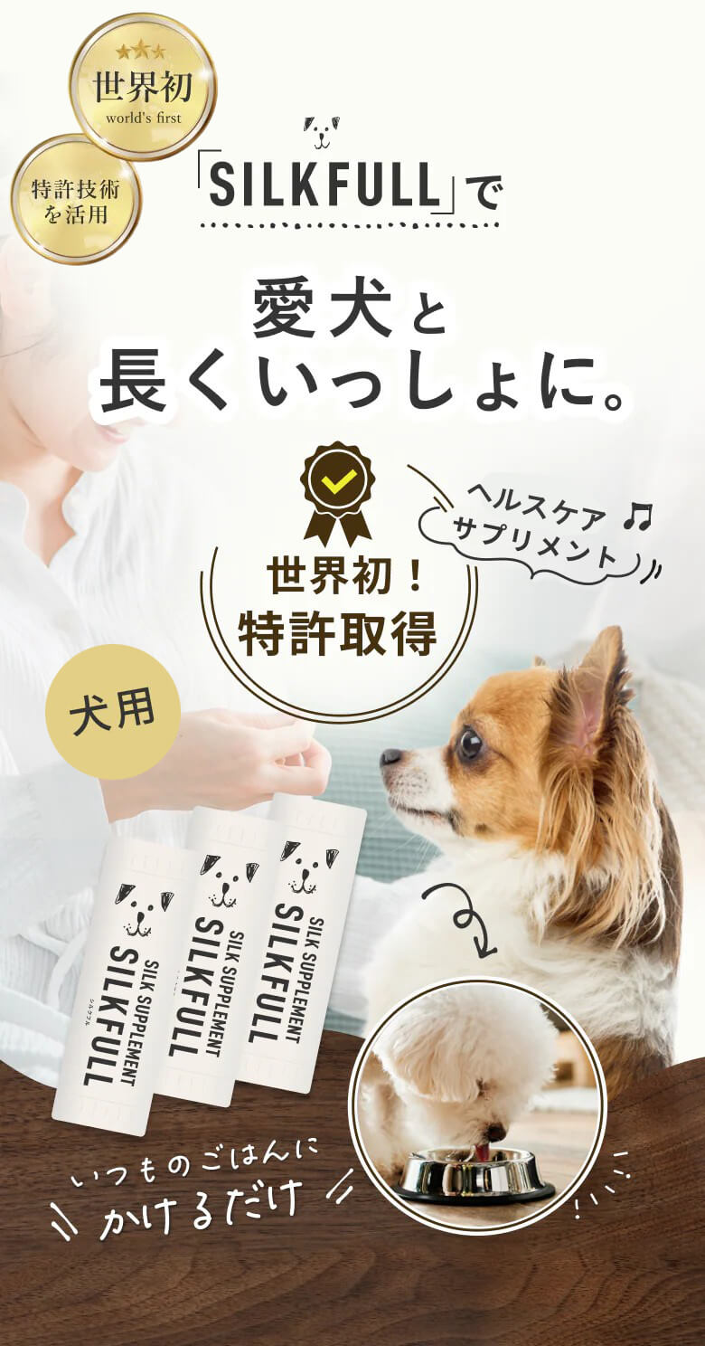 天然シルク成分配合で、愛犬の健康をサポートします。