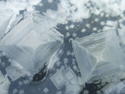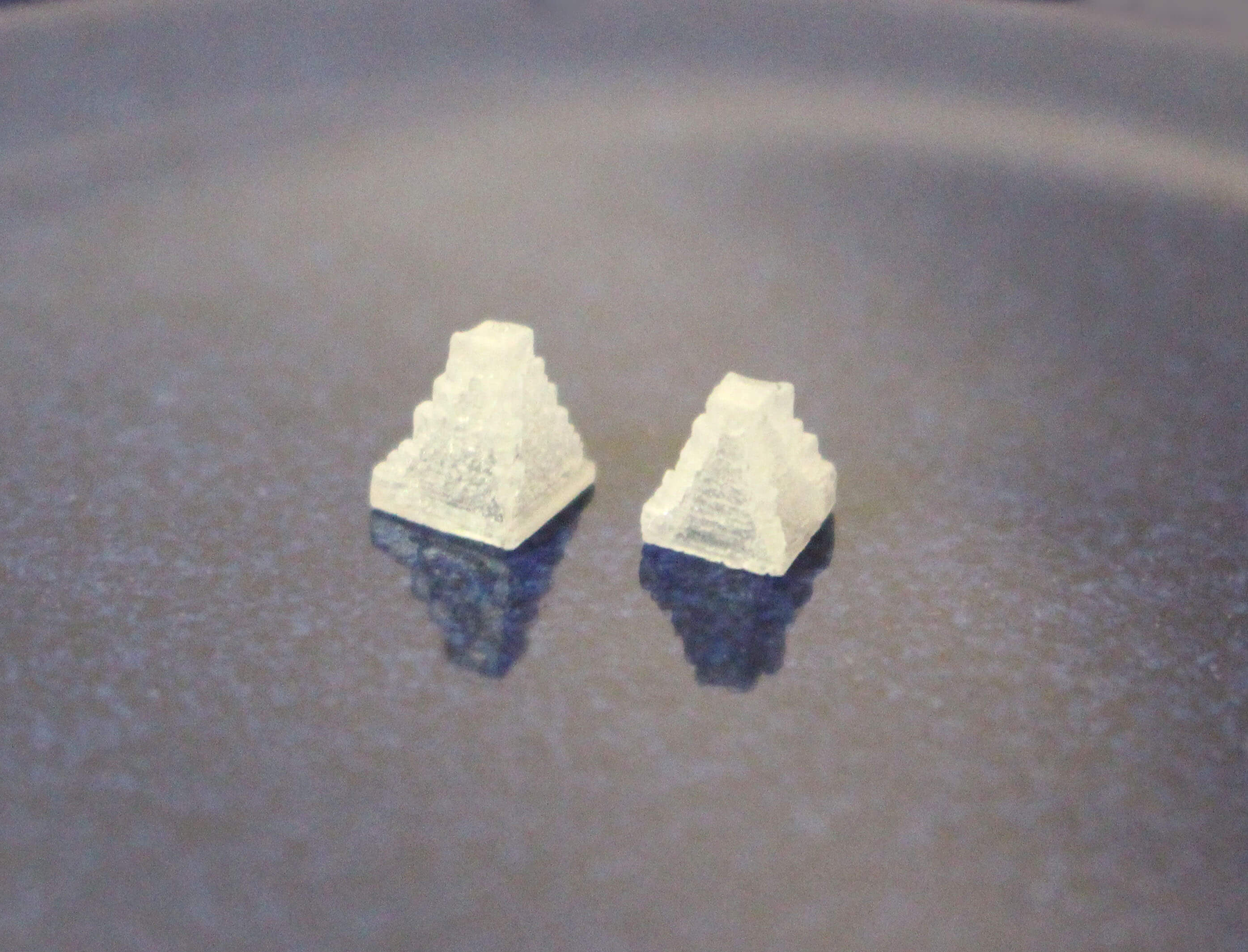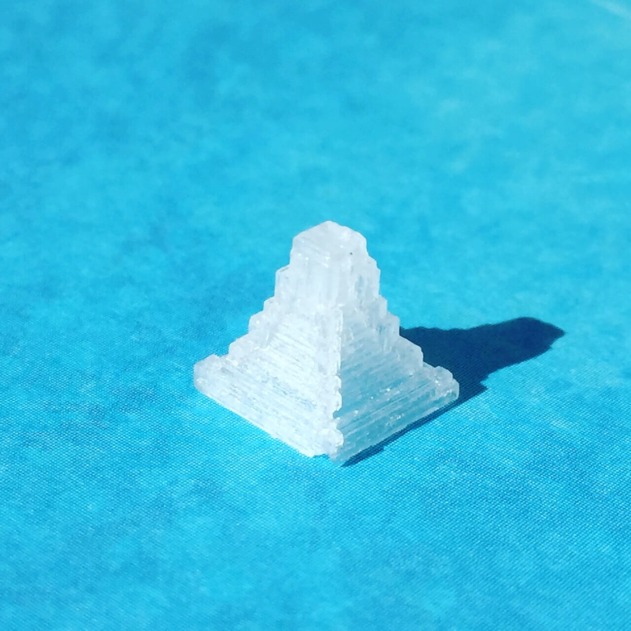 海水から得られる塩の結晶は、一般的にはサイコロ型をしていますが、シンソルトピラミッドは、ピラミッド型の美しい結晶を作ります。