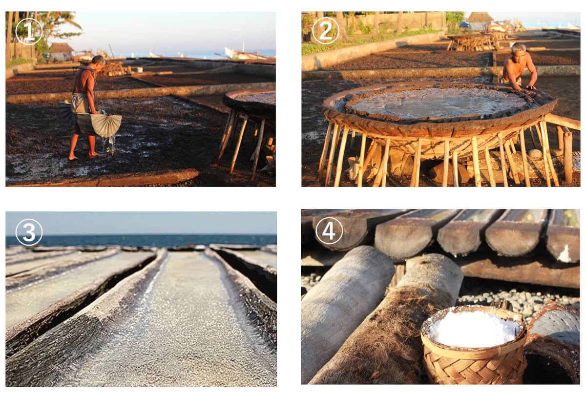 5:3度の天日乾燥で得られる粗塩を聖水と呼ばれる湧き水に溶かします。その後、溶かした鹹水を手作業でろ過します。この工程も機械や電気機器は使用しません。