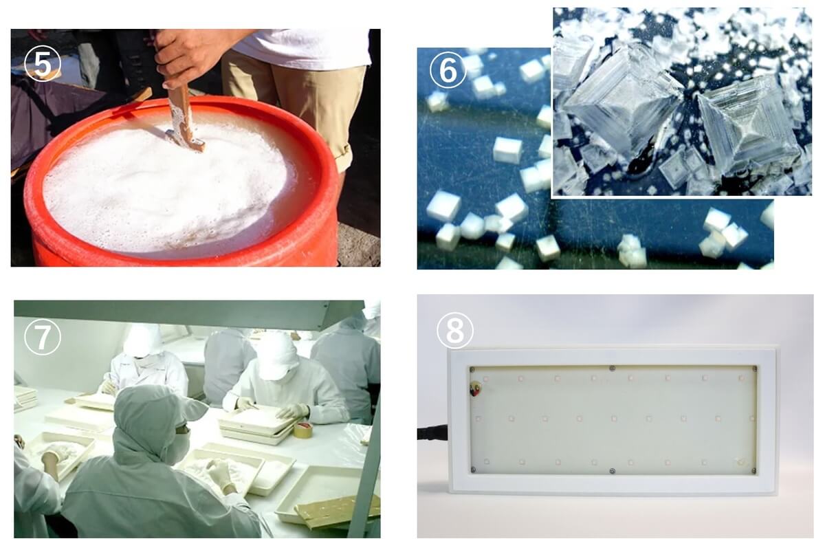 1:塩田で海洋深層水を天日乾燥。大地と海のミネラルの融合です。