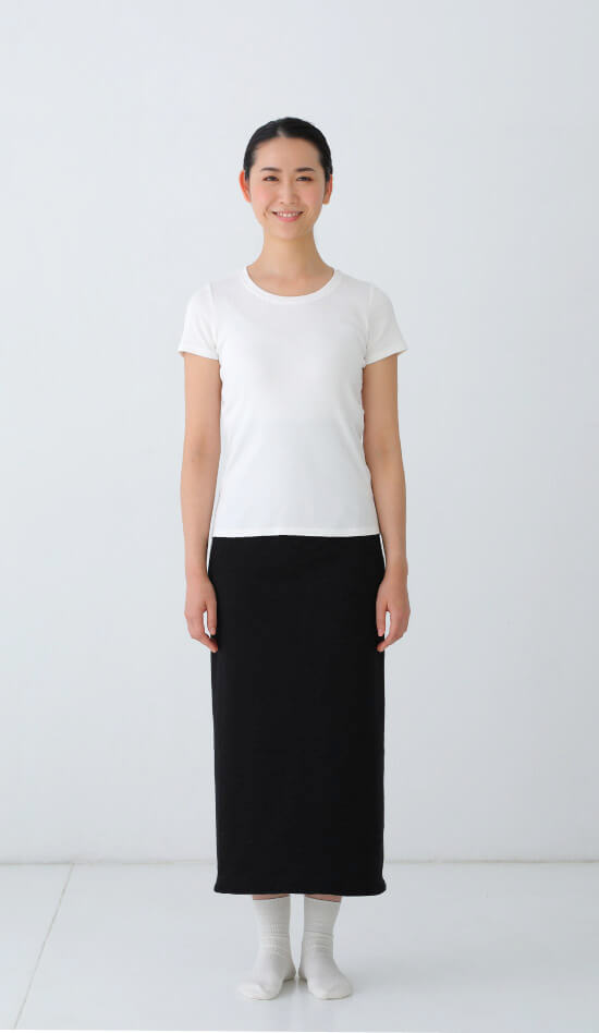 肋骨をやさしく支え、骨盤・お尻・足に柔らかくフィットし続けます。