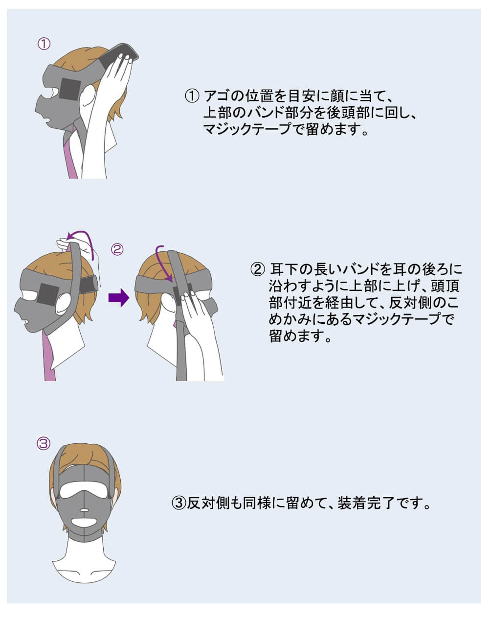 | 注意事項 | ・使用中に不快感や異常などを感じた方は、速やかに使用を中止してください。 ・破損(ほつれ、破れ等)がないことを確認してから装着してください。 ・高温・多湿、直射日光の当たる場所を避け、室温で保管して下さい。 |