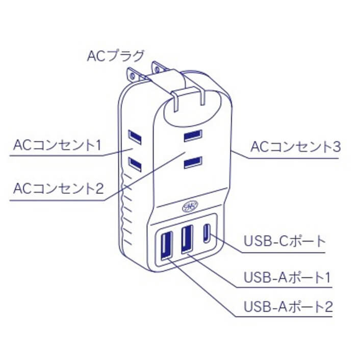 | 商品詳細 | ■製造国:中国 ■サイズ:縦約88㎜×横約45㎜×高さ約28㎜ ■本体重量:約90g ■仕様:3口のACコンセント+USB-A 2ポート+Type-Cポート搭載 ■入力:AC 100V 50/60Hz 15A ■出力: ACコンセント3口合計 1400W AC出力:100V 1400W(Max) USB出力:20W(Max) USB-A:DC5V-2.4A(Max) USB-C:DC5V-3A DC9V-2.22A DC12V-1.67A ■本体材質:PC+ABS ■プラグ形状:Aタイプ ■使用温度:0~35℃ ※USB充電ケーブルは付いておりません。お持ちのケーブルをご利用ください。 |