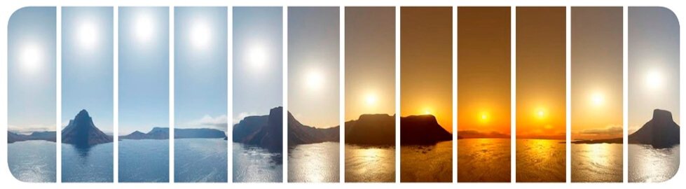 私たちの脳は、一日の中で変化する太陽光の明るさや色味の違いを感じ取り、昼と夜を認識しています。