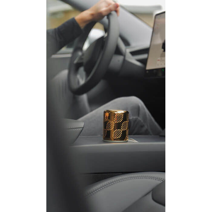 標準的な車のアームレストやドリンクホルダーにすっきりと美しく収まるよう計算されたデザインです。