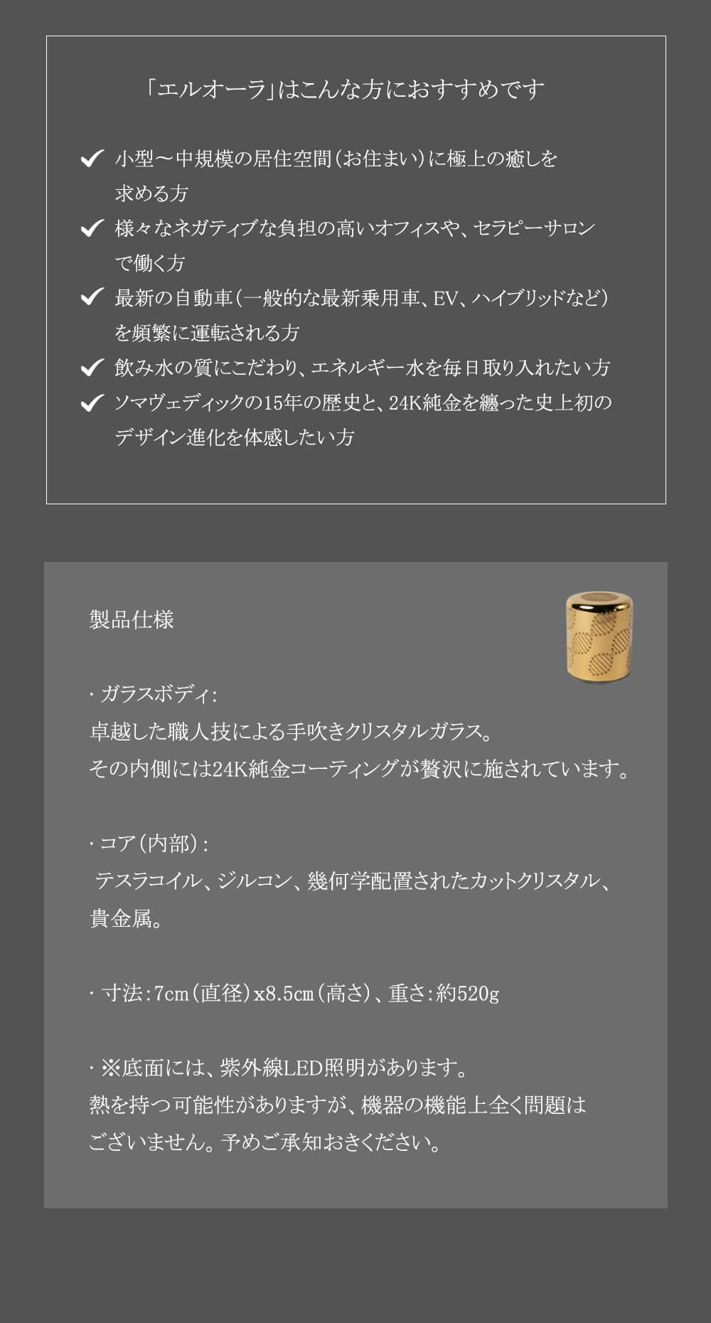 | 商品名 | ソマヴェディック「エルオーラ・ゴールド」 |