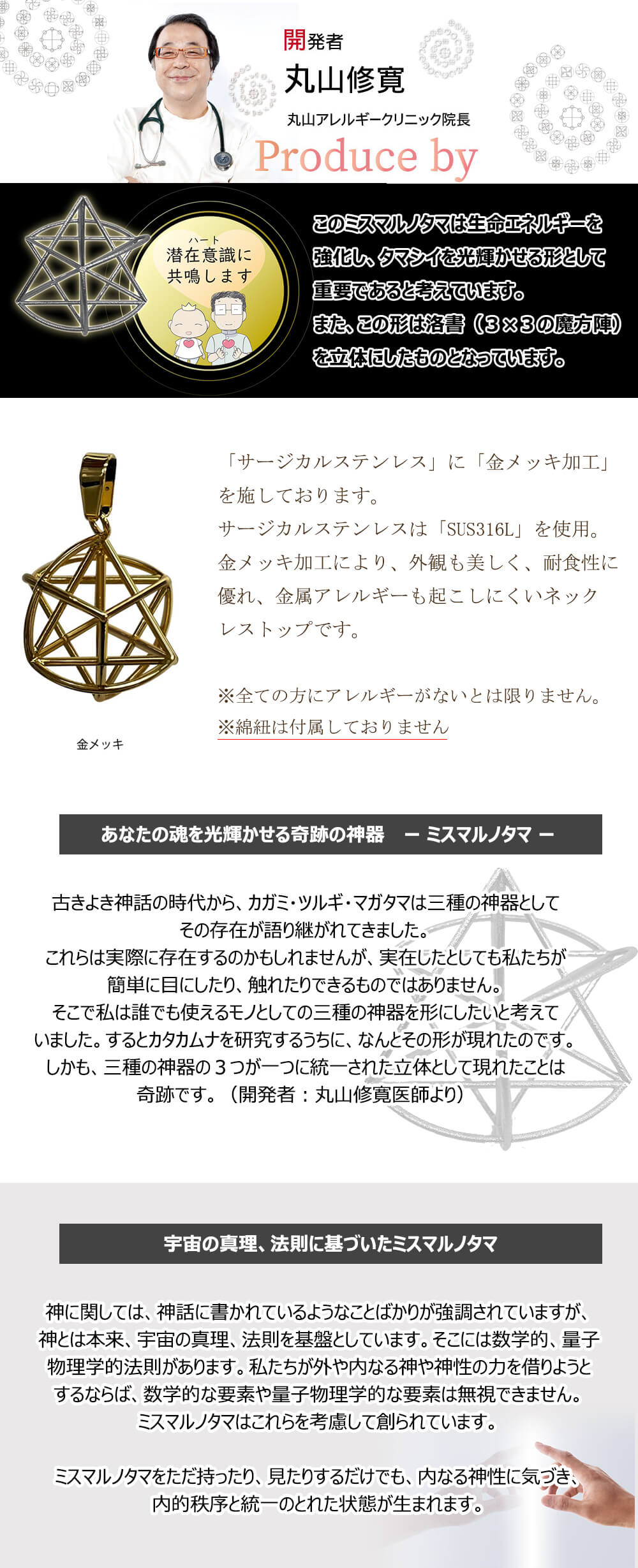 ★ミスマルノタマネックレストップチャーム サージカルステンレス+金 カタカムナ ユニカ 丸山修寛