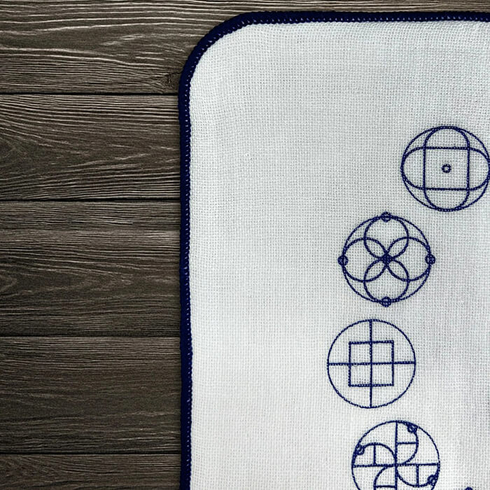 カタカムナ第3首の図柄をあしらったガーゼハンカチです。